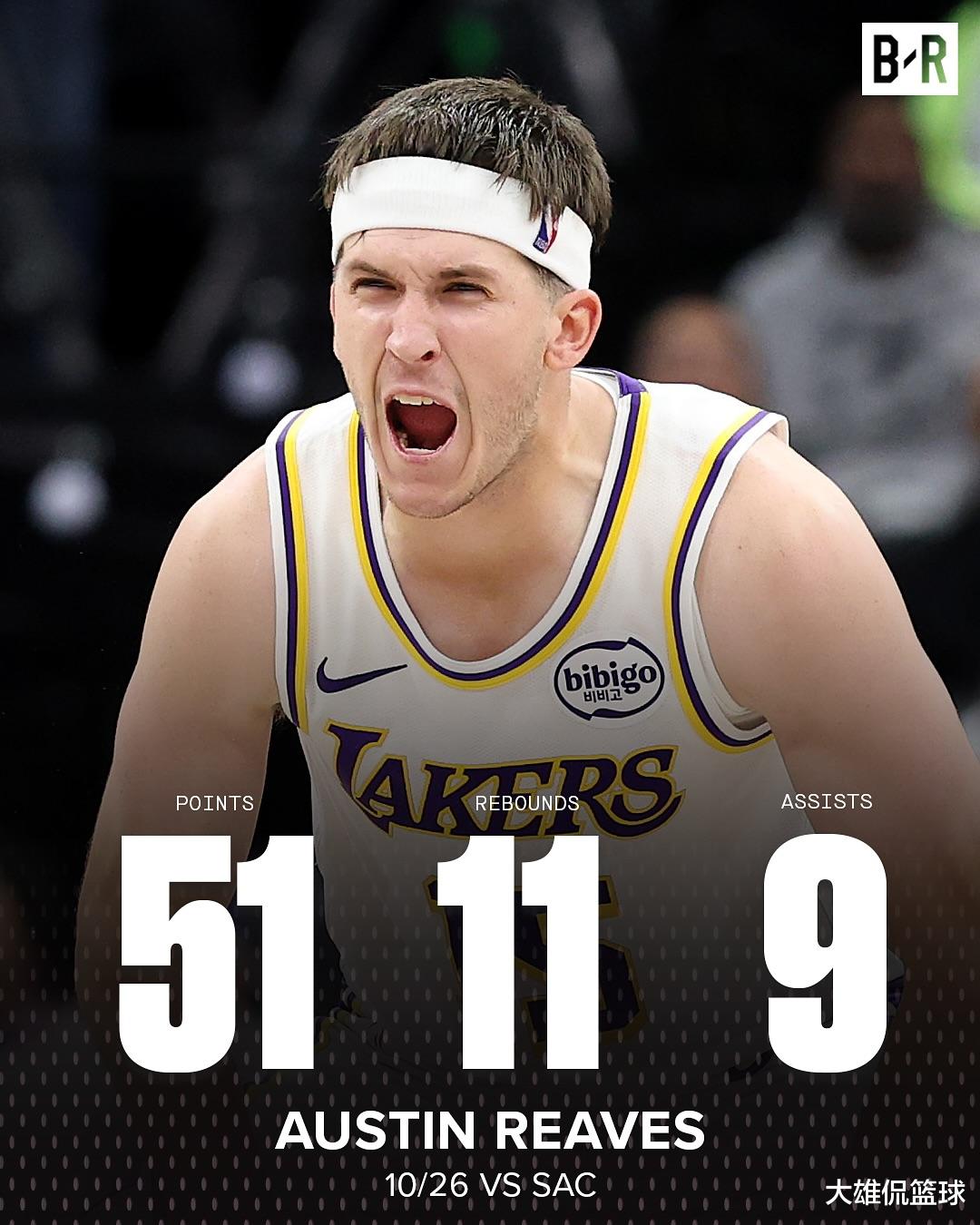 里夫斯在卢卡东契奇和勒布朗詹姆斯缺席的情况下,挺身而出。整场比赛22投12中,罚球22投21中,一人独得51分,11个篮板和9次助攻。谁能想到,曾经的落选秀,居然能打出超级巨星的表现。末节更是独得15分,帮助湖人将领先比分的优势,保持到最后。